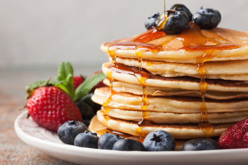 There's so many options when it comes to topping your pancakes; peanut butter, honey, jelly, jam, butter, cinnamon and sugar, yogurt, or ice cream!